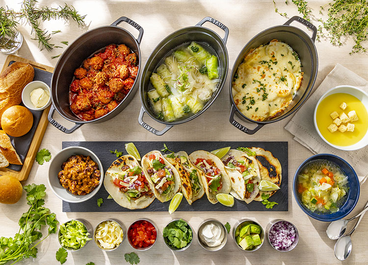 メインが選べるランチビュッフェ。デリ風サラダやホットディッシュ、スープ、デザートをお好きなだけお楽しみいただけます。好みで作れるタコスステーションも魅力。メインは肉料理や魚介料理など9品から選べます。